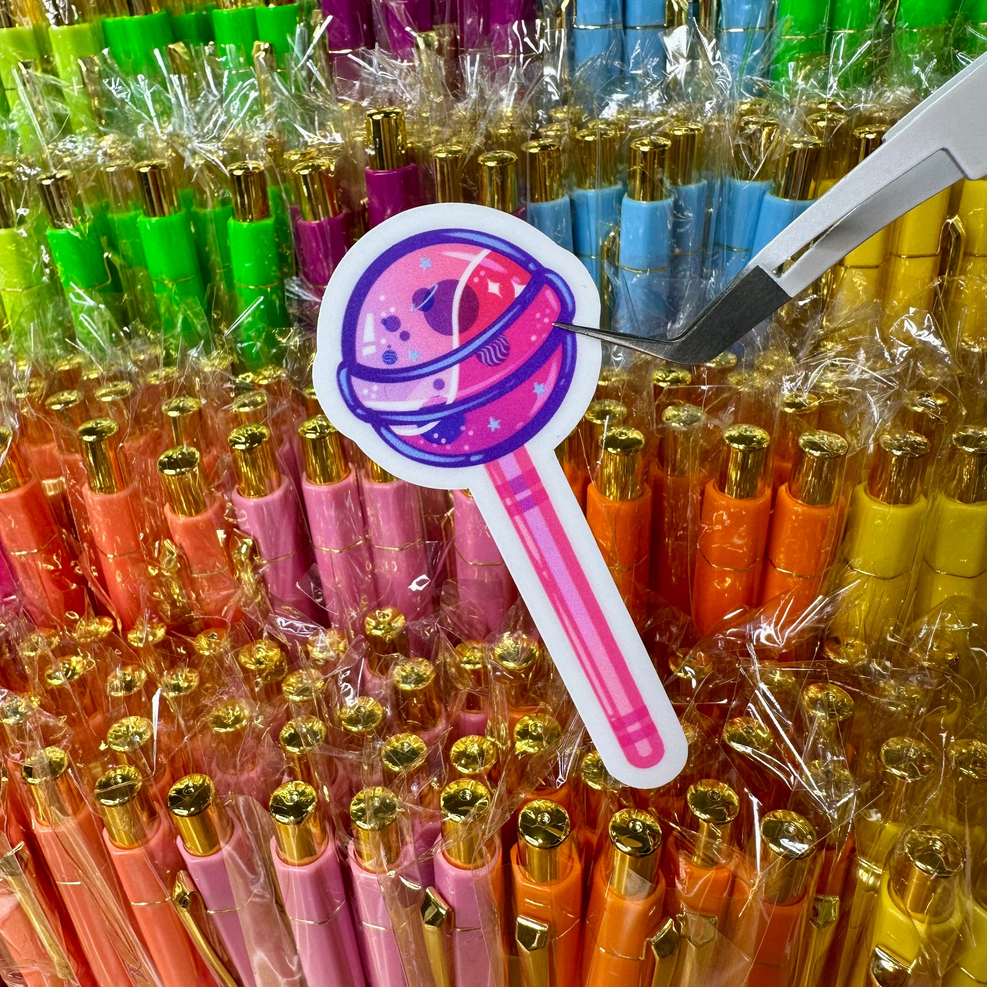 Add a touch of whimsy to your laptop, water bottle, or phone case with our Lollipop Vinyl Sticker. Made from matte vinyl, it's durable and easy to apply. Add a pop of color and personality wherever you go.