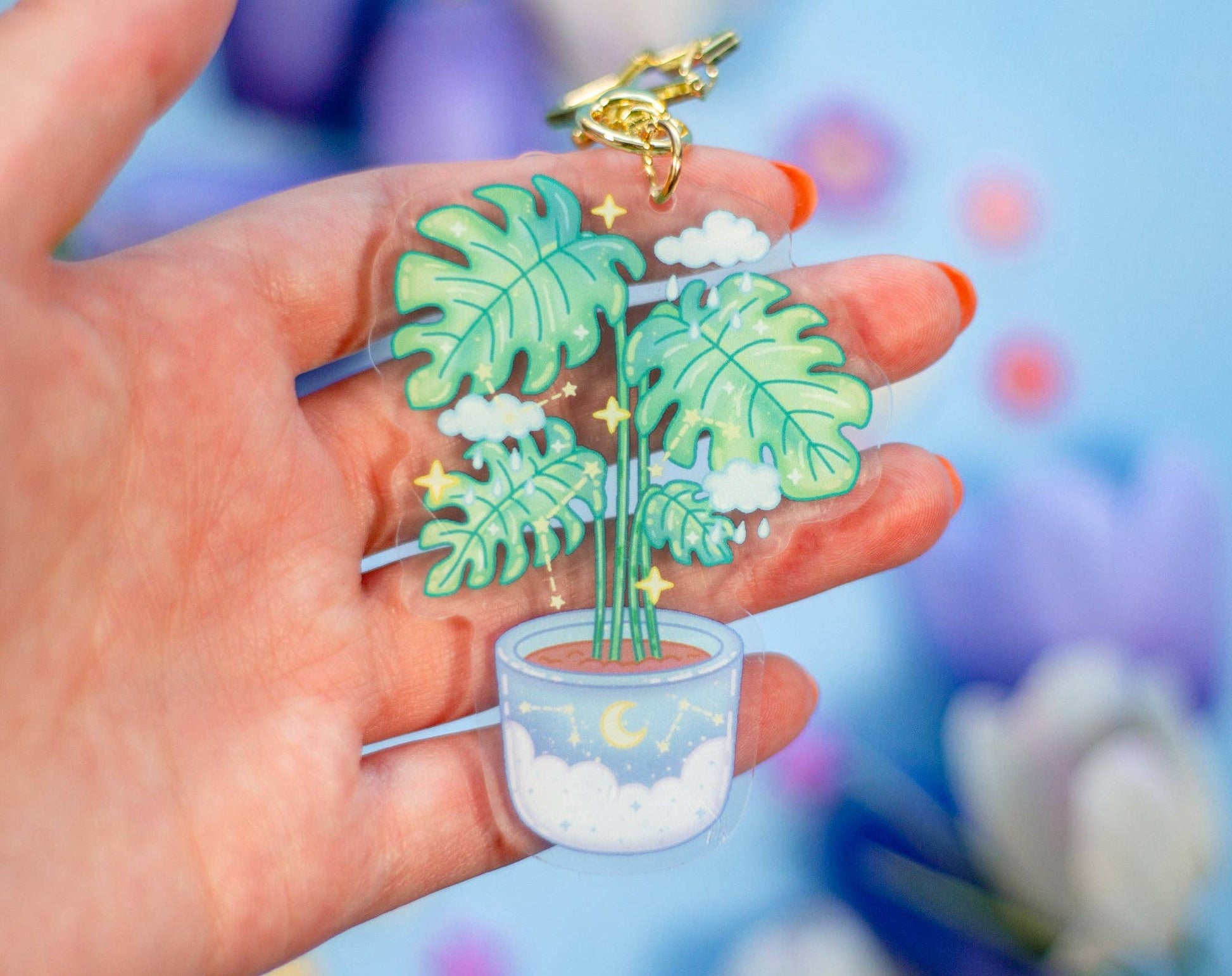 - Transparent acrylic keychain with gold clasp