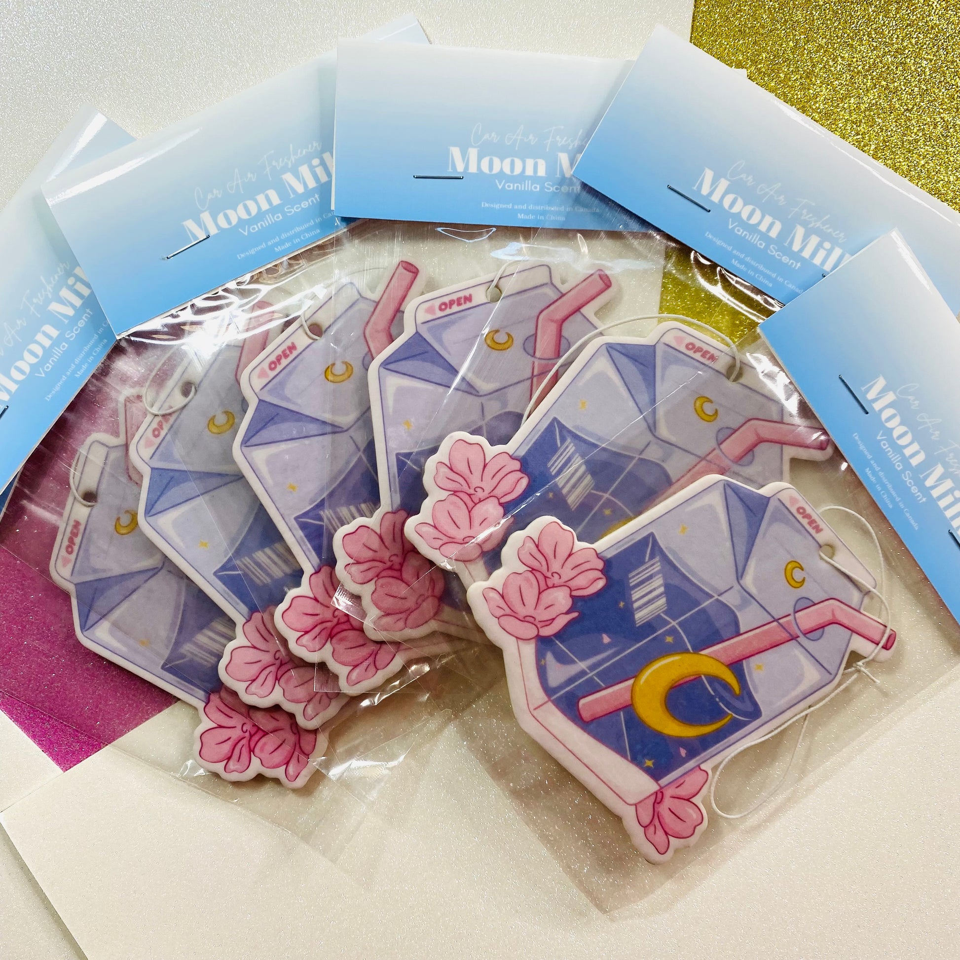 Do you want a fresh and clean-smelling car? Revitalize your vehicle with Moon Milk Car Air Freshener! Our air freshener has a special vanilla or strawberry scent to make your car smell pleasant and inviting. Create the perfect atmosphere for your rides, and get ready to make a great impression.