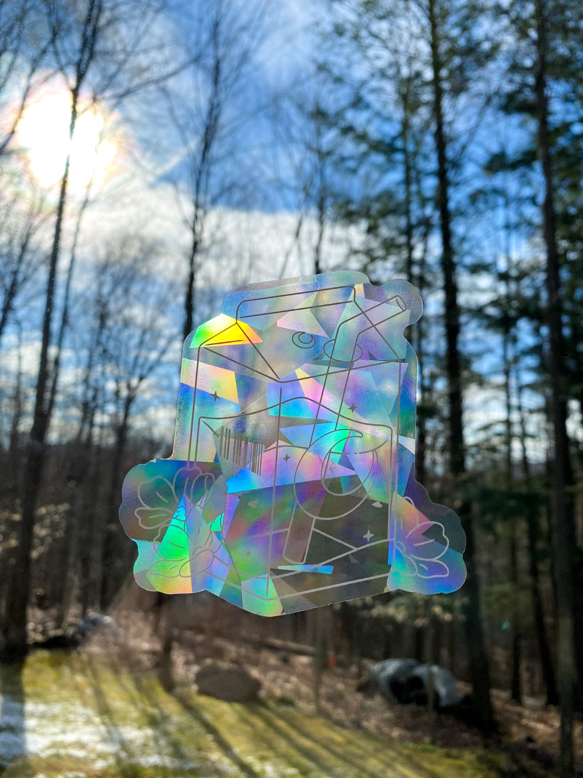 These are static cling suncatchers 🌈 Once the light hits them directly, they cast beautiful rainbows across the room, so I would recommend either an east-facing or west-facing window for maximum effect! They can also prevent birds/people from hitting windows and glass doors :)